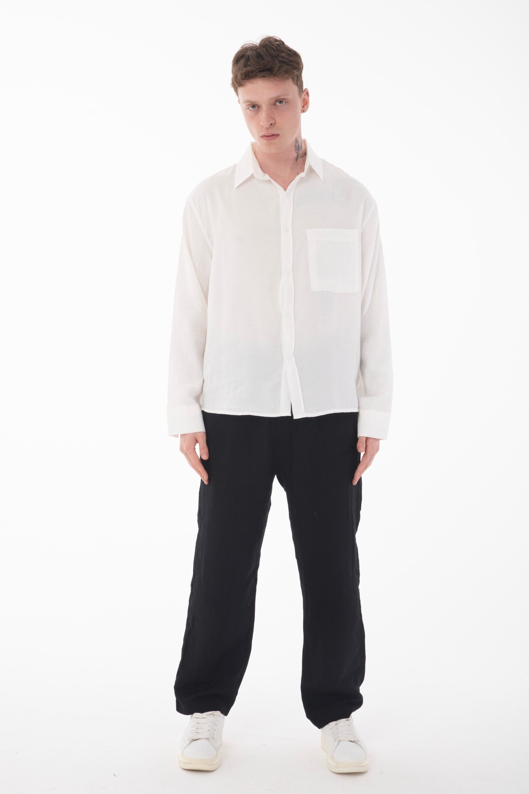 Stand Collar Single Pocket Detailed Long Sleeve Modal Shirt - Ecru