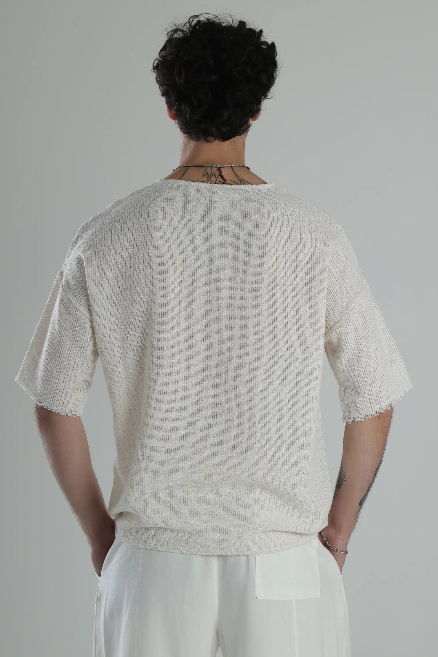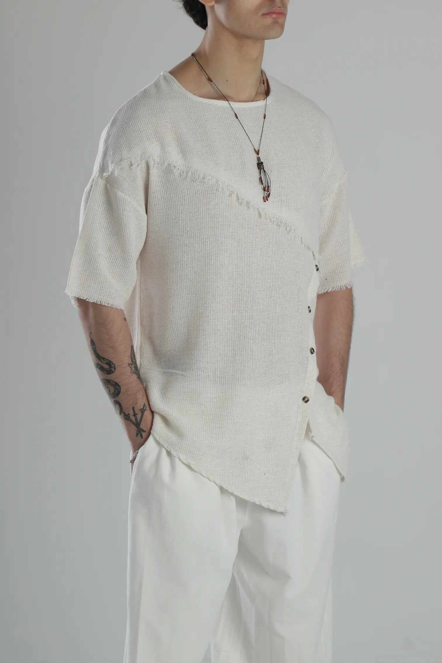 Asymmetric Buldan T-Shirt with Button Detail - Beige