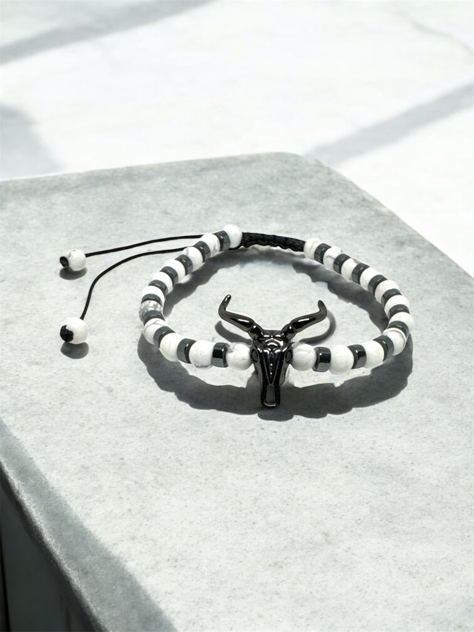 Howlite Natural Stone Bracelet – Black Zircon Bull Head Detail