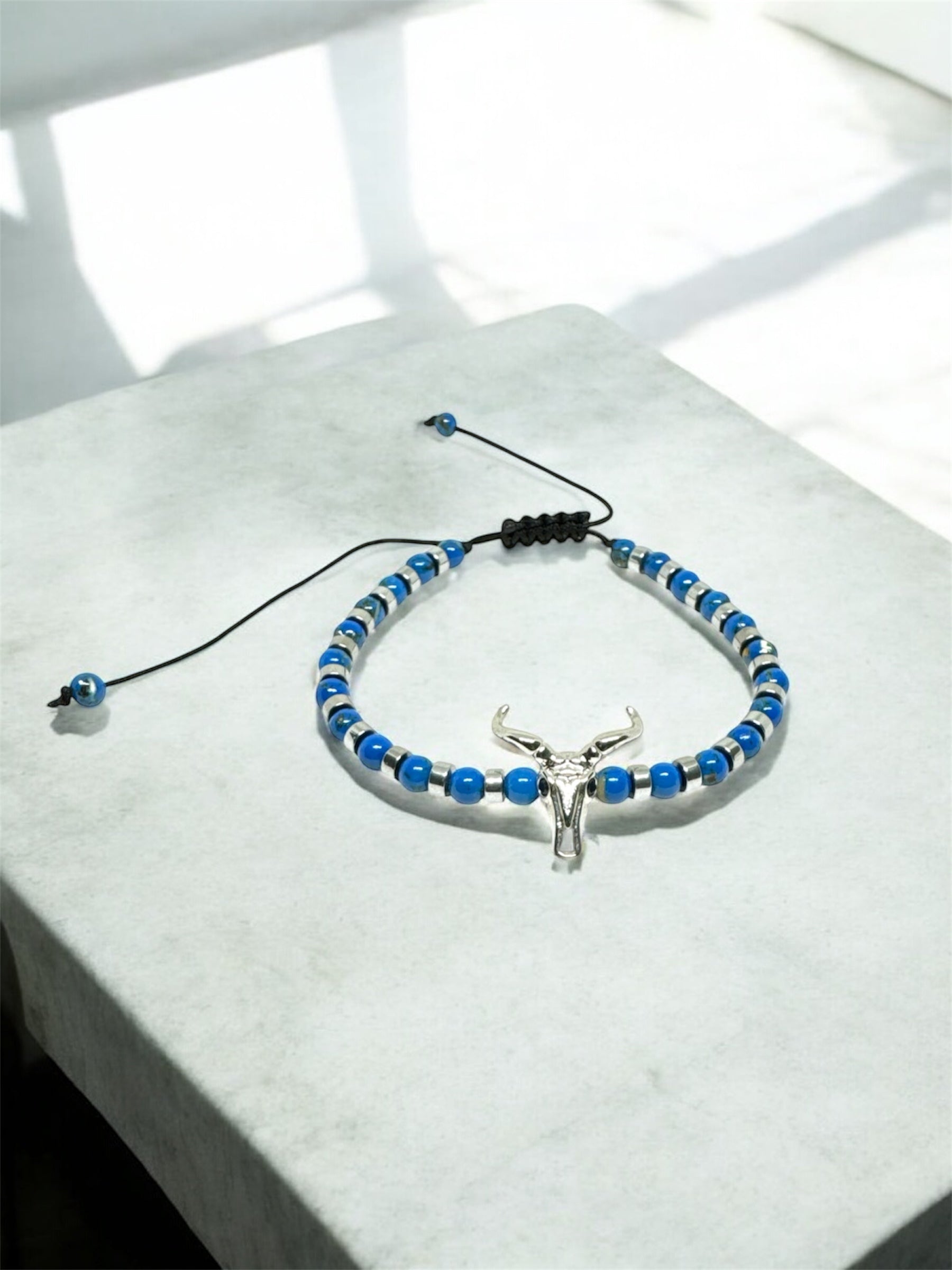 Lapis Lazuli Natural Stone Bracelet – Silver Zircon Bull Head Detail