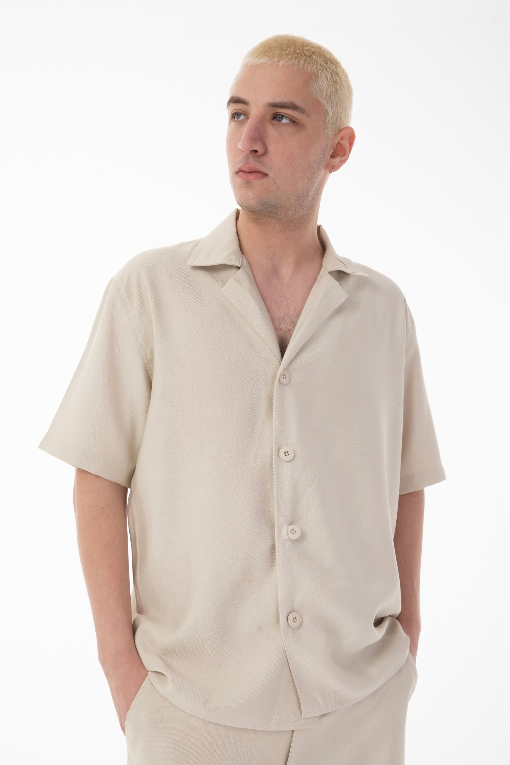 Short Sleeve Shirt Zippered Pants Set-Beige