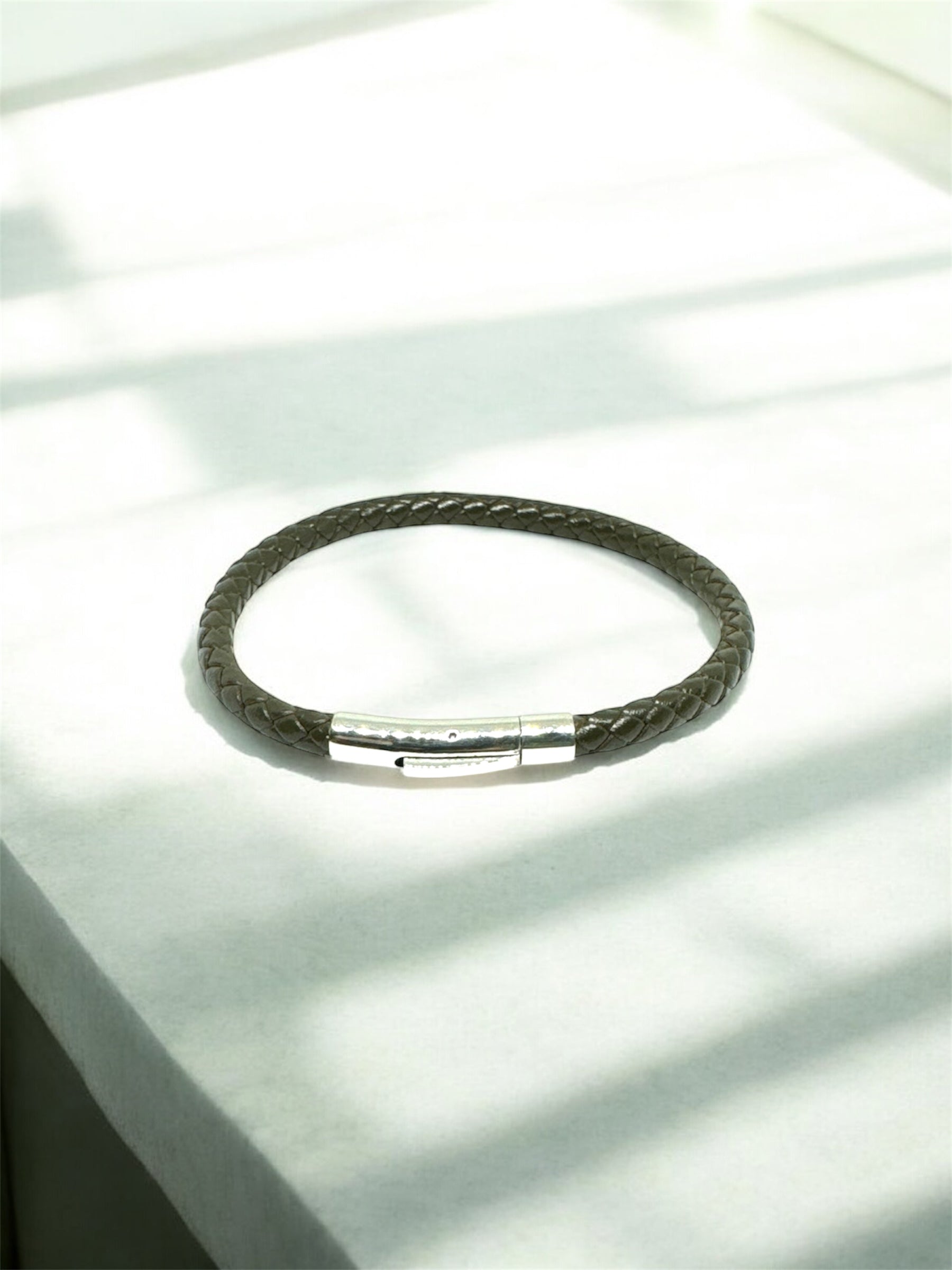 Zircon Clasp Cross Braided Khaki Natural Leather Bracelet